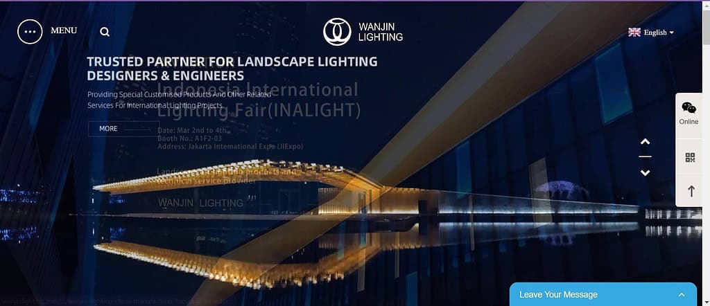 Wanjin Lighting is een hightechbedrijf gevestigd in Jiangmen. Dit omvat het ontwikkelen, ontwerpen, produceren van technische diensten en het verkopen van landschaps- en scènekunstverlichting. Ze zijn bekend en een van de toonaangevende bedrijven op het gebied van scènekunstverlichting en unieke aanpassingsmogelijkheden.