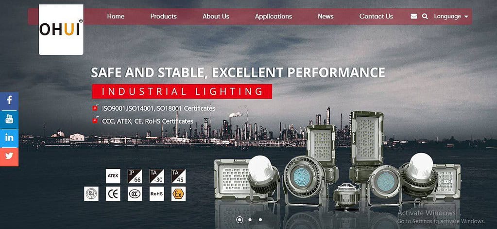 他们为中国国家级公司提供照明解决方案,包括国家电网、中国电力集团、神华集团、中国石油和中国化工集团。他们的防爆灯可满足任何工业需求,如煤矿、石油、天然气和化学工业、海洋平台等。军队、公安、消防、铁路、公路、港口和其他行业。所有产品均获得了不同的国家和国际认证。想知道是什么让欧辉更可靠吗?正是他们的认证-ISO9001和14001、OH SAS18001、CCC、CE、RoHS等建立了信任。凭借这种可靠性,他们的产品销往中国31个省市。